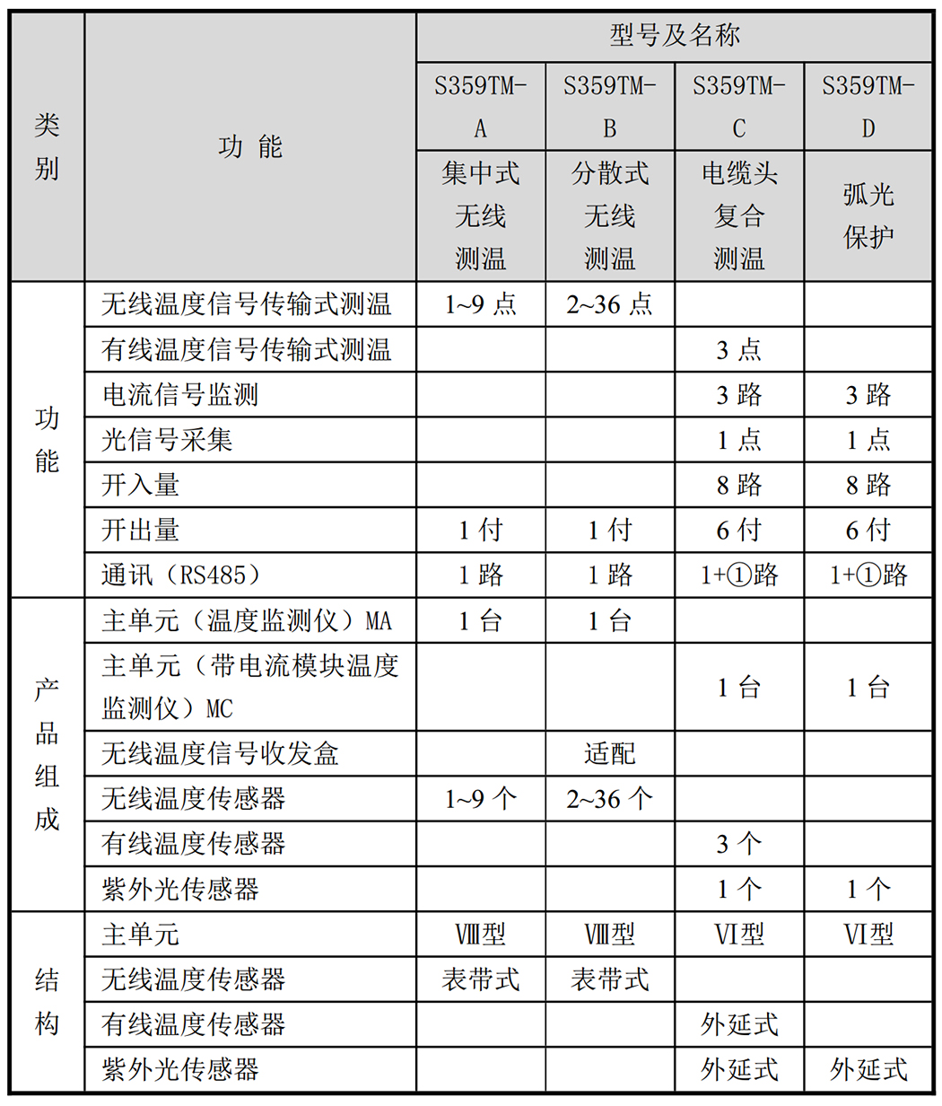 本公司 S359TM 测温系统为国内领先水平的电气设备温度在线监测系统,设计构思独特,温度测量采用无线传输温度信号和有线传输温度信号方式相结合:装设温度传感器后影响电气设备(如开关柜)整体绝缘、耐压性能的测温点(如断路器触头)采用无线传输温度信号的传感器;对设备绝缘、耐压无影响或影响甚微的测温点(如电缆头),采用有线传输温度信号的传感器。